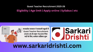 मध्यप्रदेश सरकार ने सरकारी स्कूलों में Guest Teacher Recruitment 2025-26 के तहत 78,500 रिक्त पदों के लिए आवेदन प्रक्रिया शुरू कर दी है। यह भर्ती प्रक्रिया MP Guest Teacher Bharti के अंतर्गत नवीन आवेदकों और पहले से पंजीकृत आवेदकों के लिए एक सुनहरा अवसर प्रदान करती है। यह लेख आपको MP Guest Teacher Recruitment 2025 से संबंधित सभी जानकारी step-by-step प्रदान करेगा, जिसमें पद का नाम, कुल पद, महत्वपूर्ण तिथियाँ, आवेदन शुल्क, आयु सीमा, आवेदन प्रक्रिया, और FAQs शामिल हैं। MP Guest Teacher Bharti 2025, Madhya Pradesh Atithi Shikshak Bharti, और Guest Teacher Jobs MP शामिल हों।